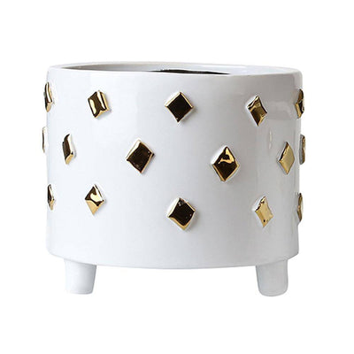 Spice up your décor with this flashy White & Golden Ceramic Bowl! Be the envy of your friends with this eye-catching planter, perfect for filling with all your favorite plants and flowers. Add some serious bling to your home - you won't regret it!